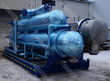 Взрывозащищенная фреоновая (R22) холодильная установка производительностью 2700 кВт для охлаждения водного раствора аммиака 20%. Режим работы -7/+40 °C.